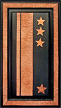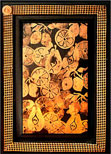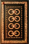 Below you see a variety of cabinet doors and drawer fronts that I designed for my kitchen--approximately arranged in their relationship as seen in the kitchen, minus the applicances. Here's a snapshot showing some of the doors in context.